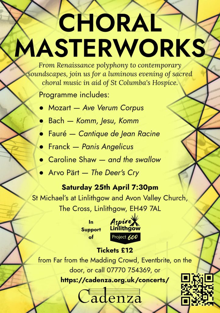 Join us for an uplifting evening of sacred music at St Michael’s at Linlithgow and Avon Valley Church in Cadenza’s annual Easter charity concert series — this year in aid of Project 600.